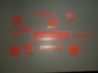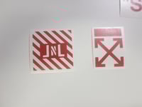 Off-White Sticker Pack; including 2× "SUSPENSION" stickers, 2× Off-White stickers, 2× Loud N Lit stickers, 4× Off-White logos and 2× LnL/Off-White stickers